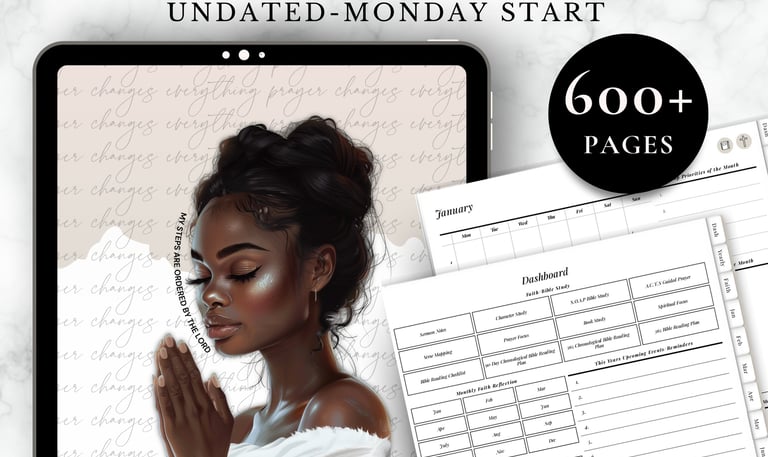 Digital Faith and Bible Study Planner: An undated digital planner designed to keep your Bible study, prayer, and sermon notes in one place.