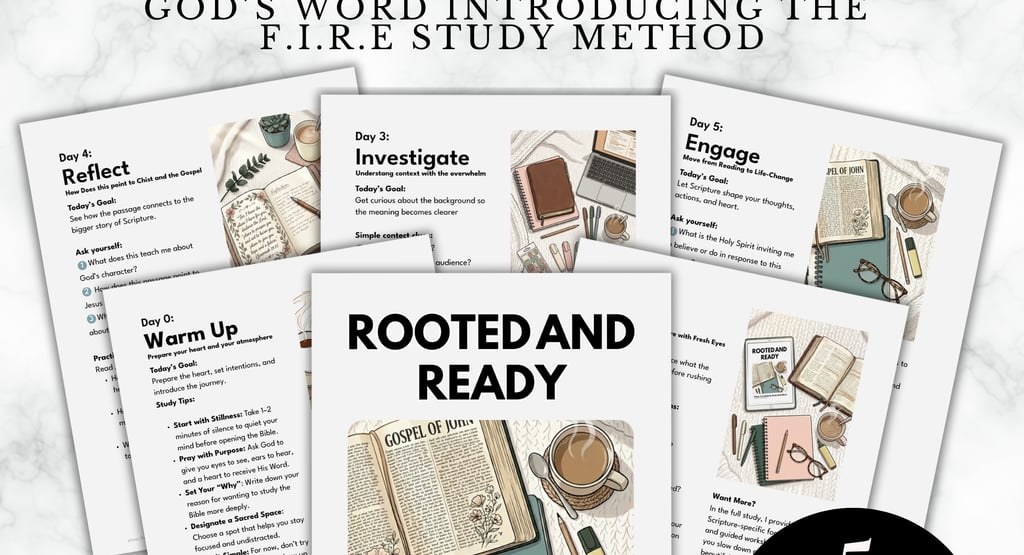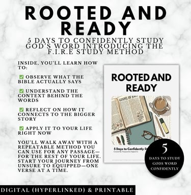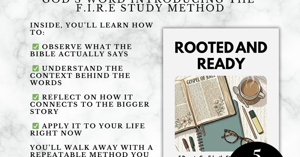 Grab the Rooted & Ready free 5-day Bible study guide and learn the F.I.R.E. Method with zero pressure.